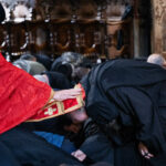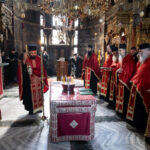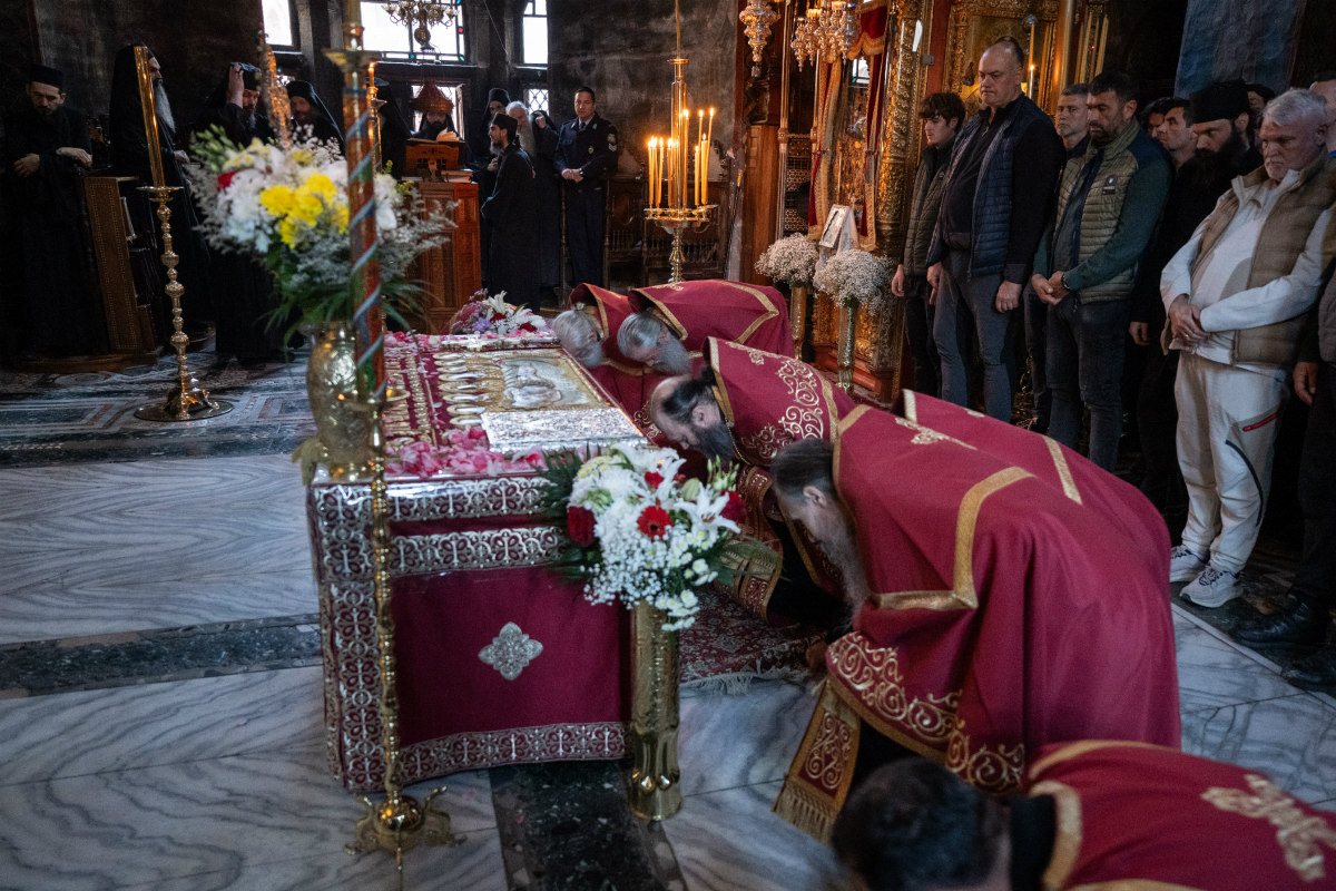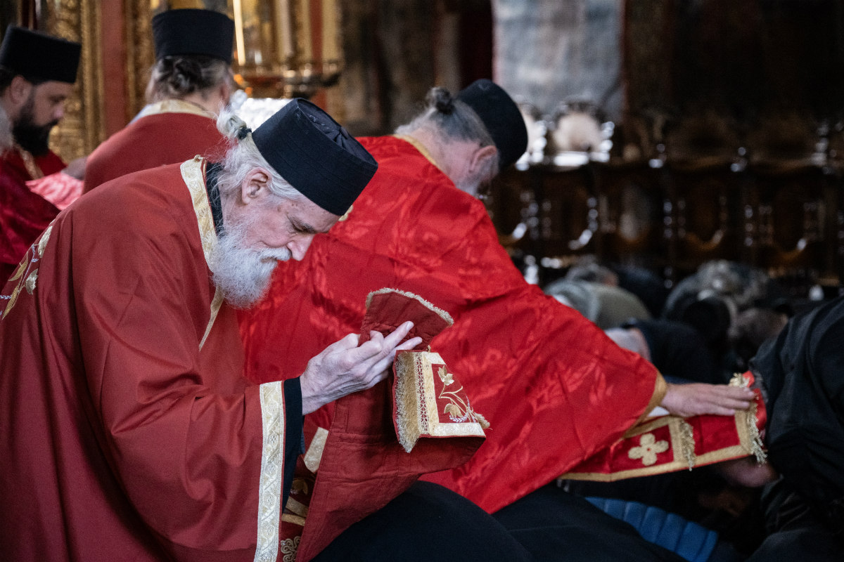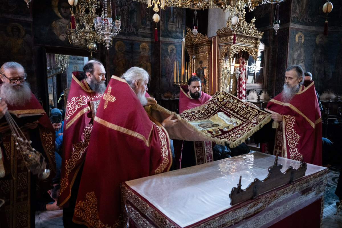 Вечерње богослужење Великог петка са изношењем плаштанице у хиландарском Саборном храму.