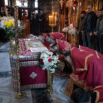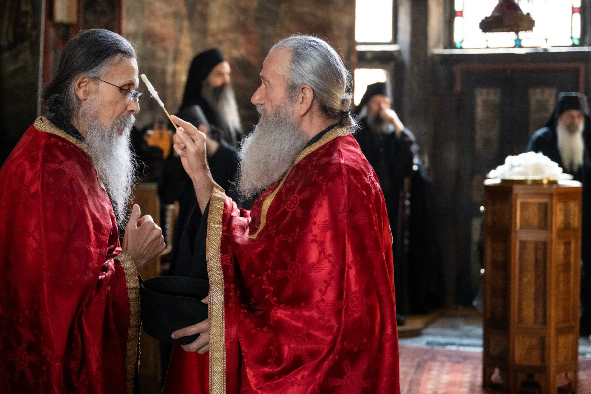 Света Тајна Јелеосвећења на Велики четвртак у Светом манастиру Хиландару.
