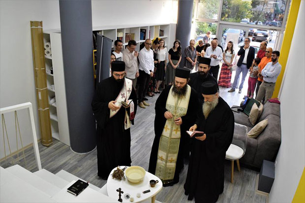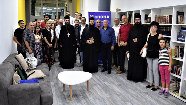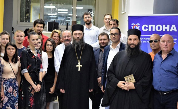 Игуман манастира Хиландар, архимандрит Методије је освештао нове просторије Српског културно информативног центра Спона у Скопљу, у улици св. Кирила и Методија 30.