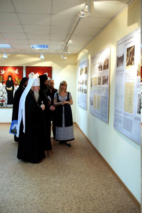 Хиландарска делегација је истог дана, у пратњи Његовог Високопреосвештенства, посетила изложбу „За веру и отаџбину. Људи и судбине у Великом рату 1914 – 1918.“ Поставка је, по речима организатора, приређена са циљем да се обнови сећање на далеке стране историје и ода поштовање онима који су у годинама Првог светског рата пожртвовано служили на фронту и у позадини, о високом патриотском надахнућу, спремности да се положи живот за веру и отаџбину, о смелости и храбрости наших народа. Као део изложбе били су представљени и радови српских уметника Исидоре Ивановић и Драгана Бартуле. Посебну пажњу гостију привукао је део поставке посвећен служењу свештеника на фронту и мисији Свете Горе.