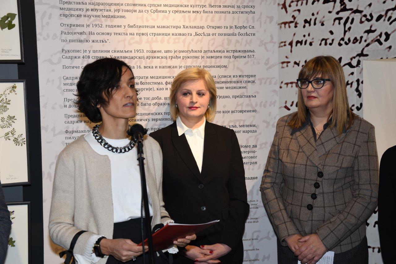 У препуној Галерији Природњачког музеја, у четвртак 26. јануара, свечано је отворена изложба „Хиландарски медицински кодекс и српска средњовековна медицина“.