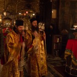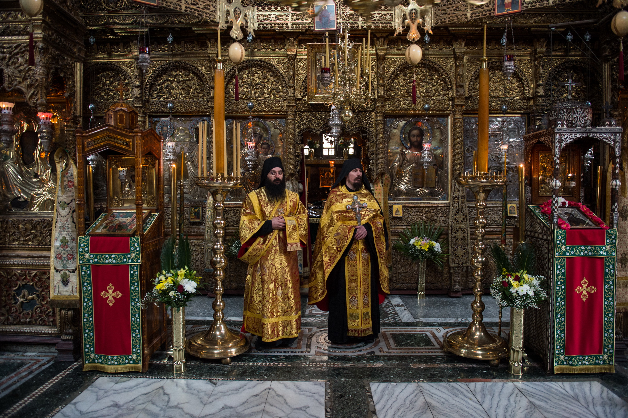 За славском трпезом, која је уследила након завршетка Свете Литургије, двојица игумана су одржали беседе. У наставку доносимо звучни запис беседа на српском и грчком. Такође, текст беседе архимандрита Амфилохија можете прочитати у преводу Ђура Кнежића.
