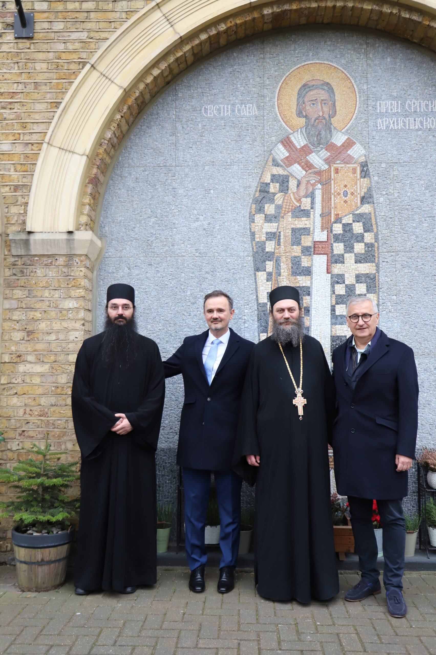 На крају Св. литургије, старешина храма прота Драган Лазић се захвалио архимандриту Методију на доласку и пожелео му добродошлицу у име парохије Светог Саве у Лондону.