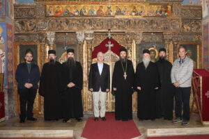 Високопреподобни архимандрит Методије у пратњи хиландараских монаха Теодосија, првог епитропа, јерођакона Харитона, монаха Симона, монаха Томе и г. Бранислава Вујиновића, председника фондације Хиландара у САД, посетио је Краљевски двор 6. новембра 2023. године.