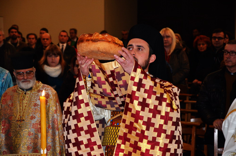 Духовно славље је увеличао јеромонах Јустин (Јеремић) из Париза, који је  у присуству мноштва радосних парохијана начелствовао Божанственом Литургијом, уз саслужење свештеника Евангелоса Псаласа и Николаоса Дјакоставрионасо из Васељенске Патријаршије, надлежног пароха проте Јакова и ђакона Душана.