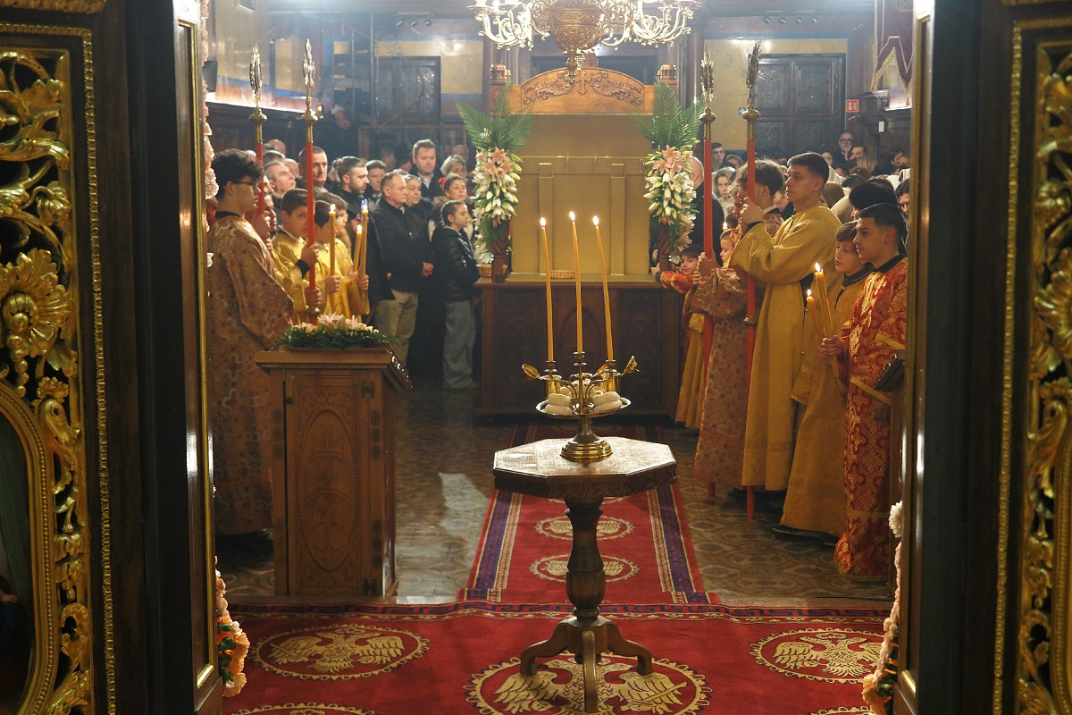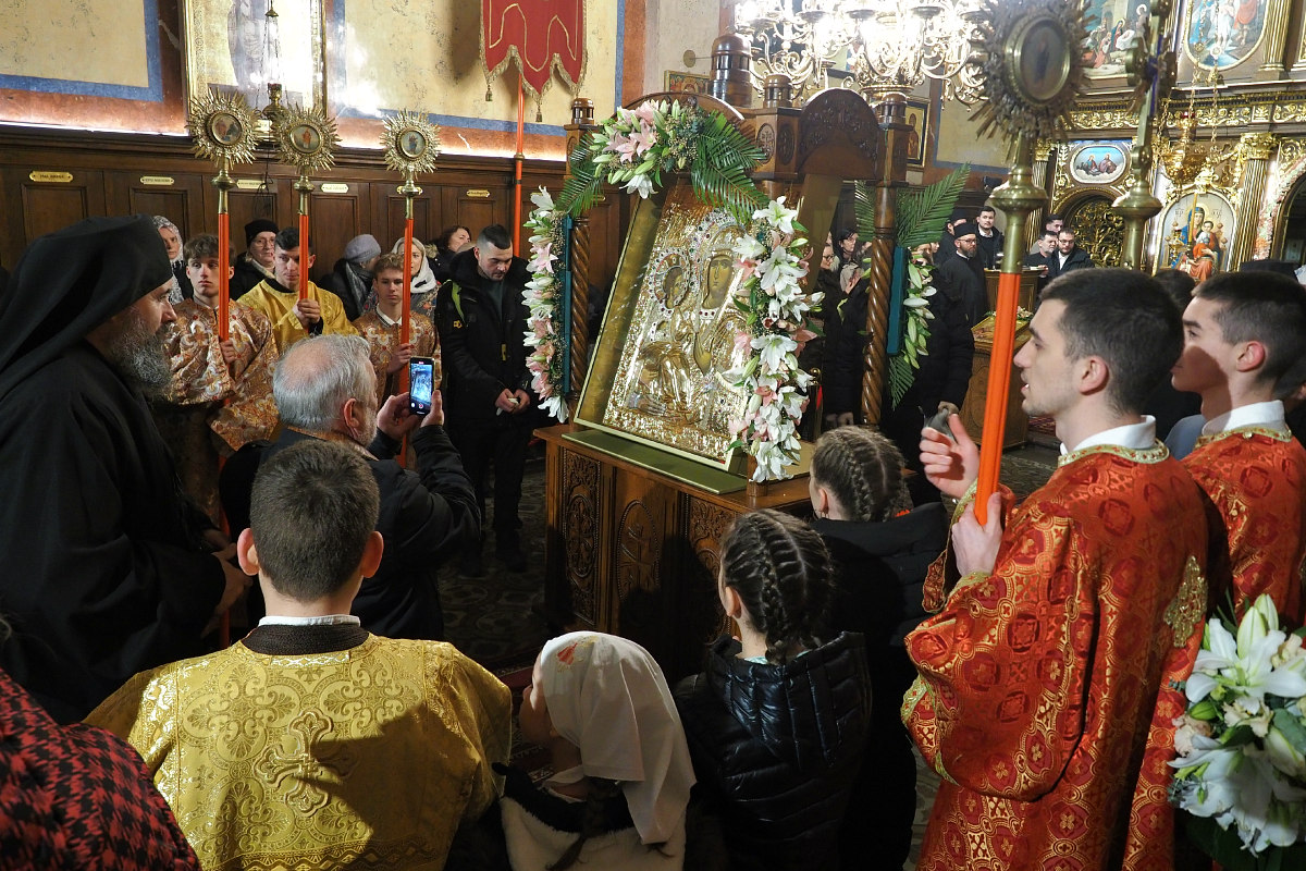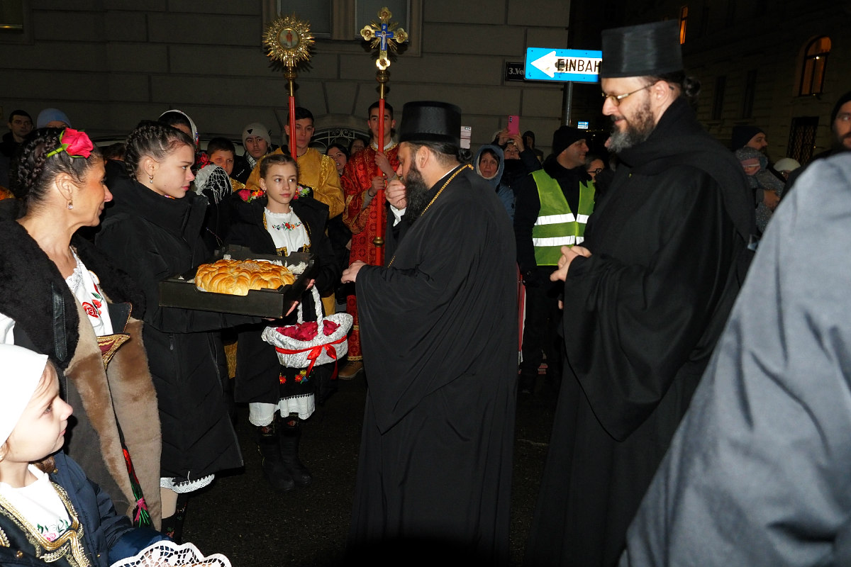 Светињу је донео Високопреподобни архимандрит Методије, игуман манастира Хиландара, у пратњи двојице хиландарских монаха, оца Дамаскина и оца Томе. Одмах након дочека и уношења иконе у храм, викарни Епископ Високопреосвећеног Митрополита Иринеја, Његово Преосвештенство Епископ мохачки г. Дамаскин, началствовао је празничним вечерњим богослужењем, уз саслужење игумана Методија и свештеника и ђакона Епархије аустријске и Епархије бачке.
