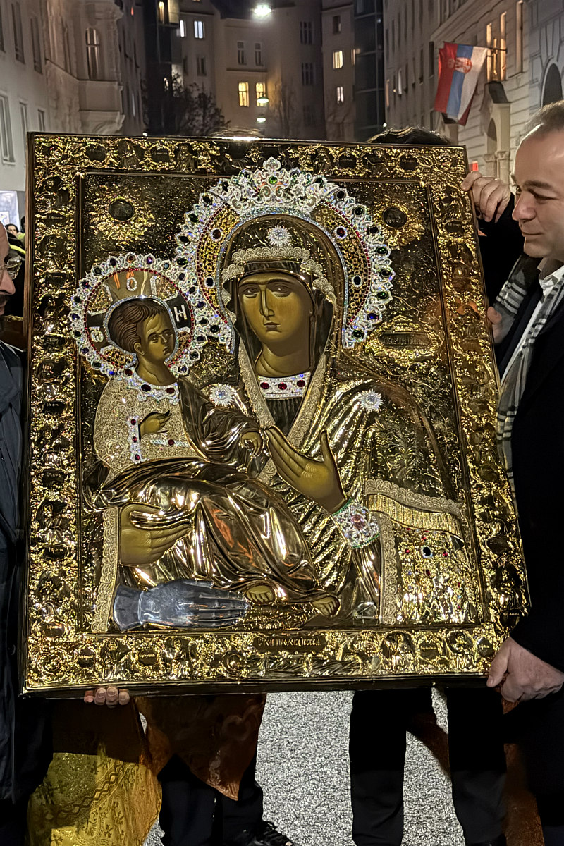 Са благословом Његовог Високопреосвештенства Архиепископа новосадског и Митрополита бачког г. Иринеја, администратора Епархије аустријске, из Свете царске српске лавре Хиландара на Светој Гори, 17. јануара 2026. године, у Саборни храм Светог Саве у Бечу, на трајно чување донет је верни препис чудотворне хиландарске иконе Пресвете Богородице Тројеручице.