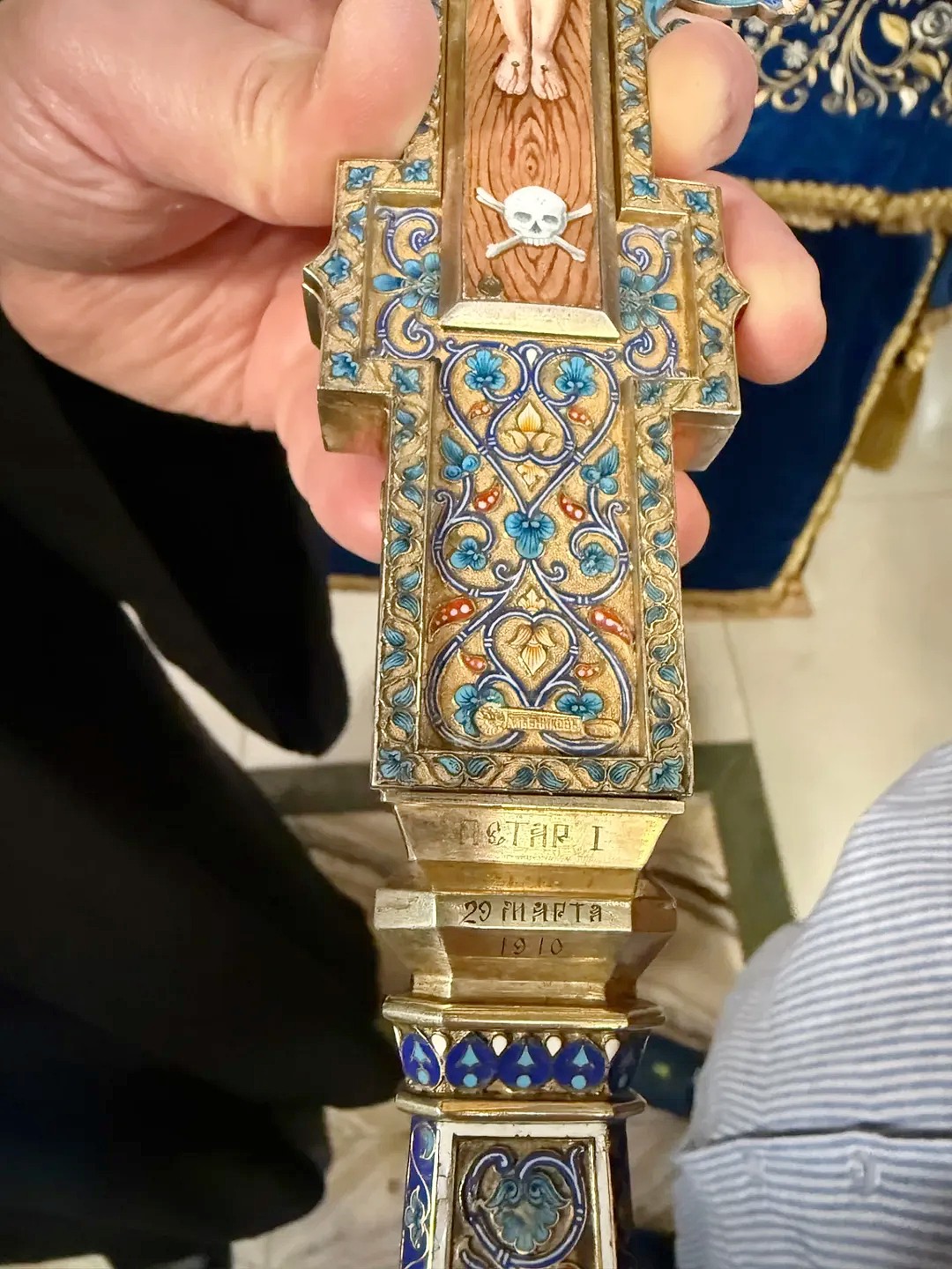 Ова историјска драгоценост израђена је по наруџбини у Царској Русији, украшена драгим камењем уз угравирану посвету Његовог Величанства краља Петра I. Крст се од тог тренутка, пажљиво чува и има вишеструку вредност, а нарочито је сведочанство значаја и вековне нераскидиве везе манастира Хиландара, српске државе и српског народа, која је заснована на истим Божанским, вечним и непролазним начелима.