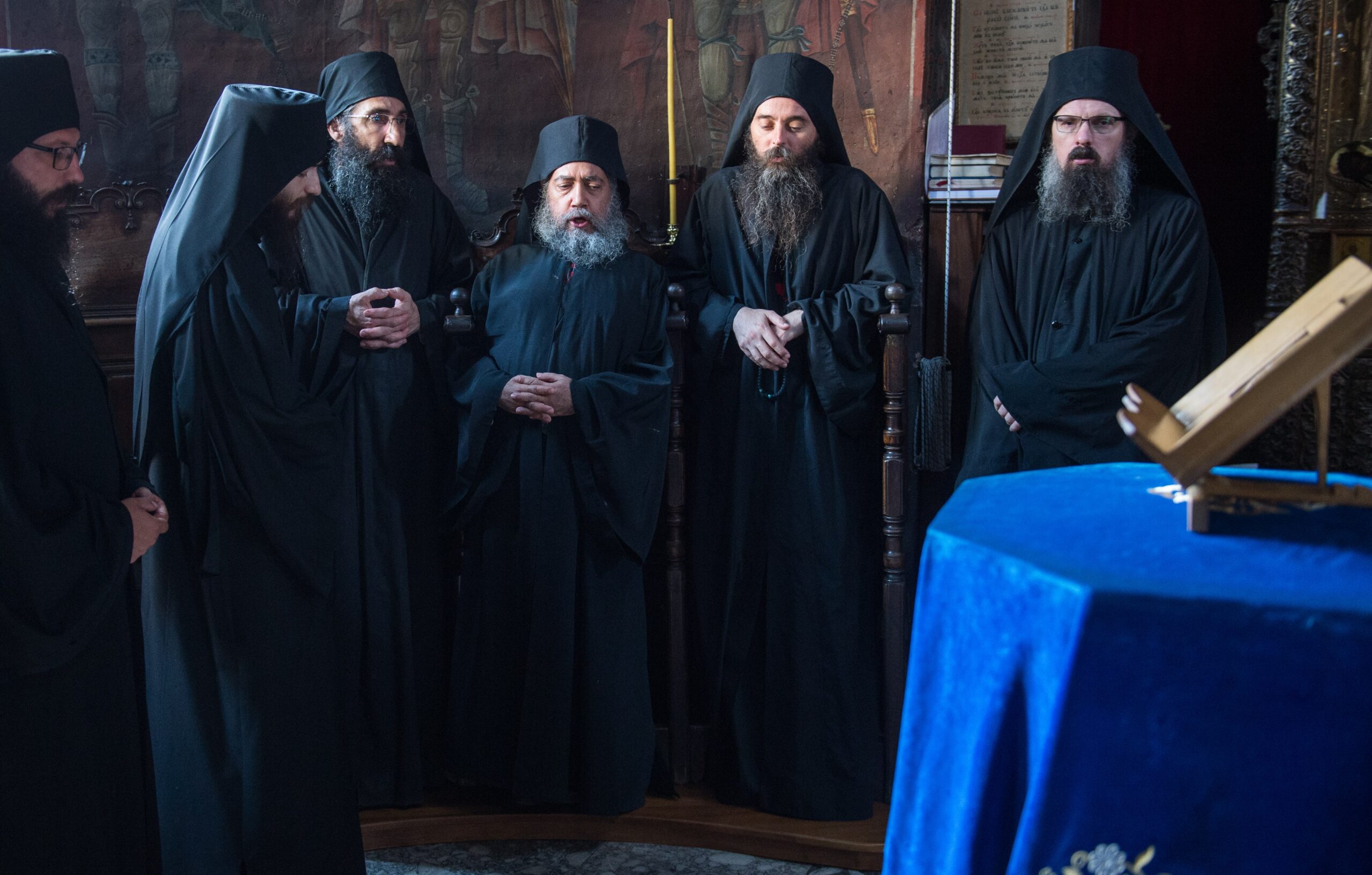 За десном певницом појао је старац Дамаскин из Новог скита са својим монасима. За левом певницом је појала братија из хиландарске келије Светог Николаја „Буразери“.