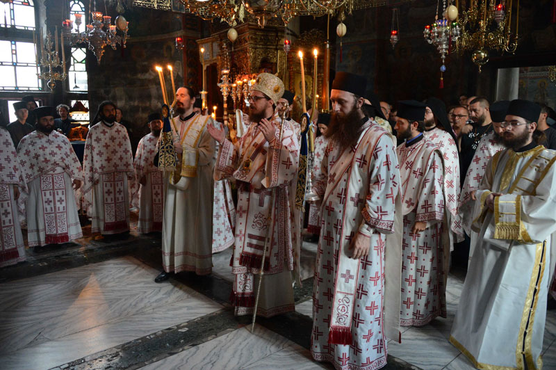 На Светој Литургији началствовао је епископ Давид уз саслужење игумана Методија и више свештенослужитеља са Свете Горе и из Србије. Увеличавајући благолепије светогорске свеноћне службе, за певницама су појали светогорци, „Данилеји“ са Катунакије и монаси хиландарске келије Светог Николе „Буразери“.