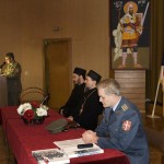 Предавању су претходиле поздраване беседе Епископа Атанасија, пуковника Драгутина Јовановића и пуковника проф. др Илије Кајтеза у којима је исказано задовољство и радост због успешно остварене сарадње између две водеће националне институције.