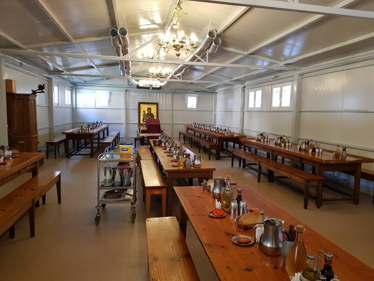 Због грађевинске реконструкције трпезарије Краља Милутина из 14. века подигнут је монтажни објекат који ће користити истој сврси. Привремена трпезарија је постављена у манастирској порти, паралелно уз Велики конак. Радови на трпезарији обухватају потпуну грађевинску реконструкцију и решавање проблема са темељима који су присутни у југозападном делу манастира. Поред грађевинских радова биће у потпуности рестауриран и фрескопис Георгија Митрофановиће из 17. века.