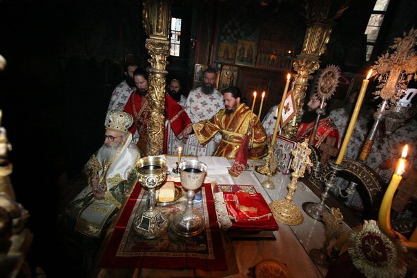 После свеноћног бденија, којем су присуствовали сви гости манастира, Преосвећени Епископ Хрисостом је служио Свету Архијерејску Литургију уз саслужење великог броја свештеномонаха, свештеника, јерођакона и ђакона како светогорских, тако и из Отаџбине. Овом приликом је у чин јерођакона рукоположен сабрат хиландарског братства, ипођакон Доситеј.