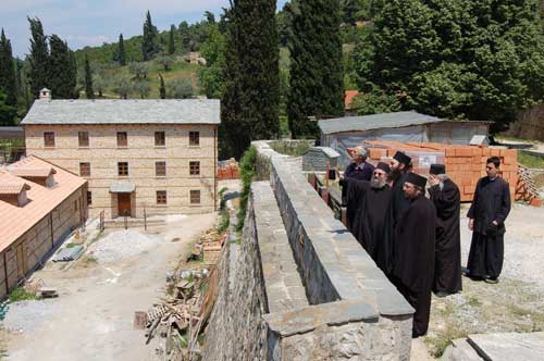 јеромонах Стефан (који последњих година обавља дужност прота када је ред Хиландара), упознали су драгог и поштованог госта са богатом баштином манастира као и са током обнове након великог пожара 2004. године.