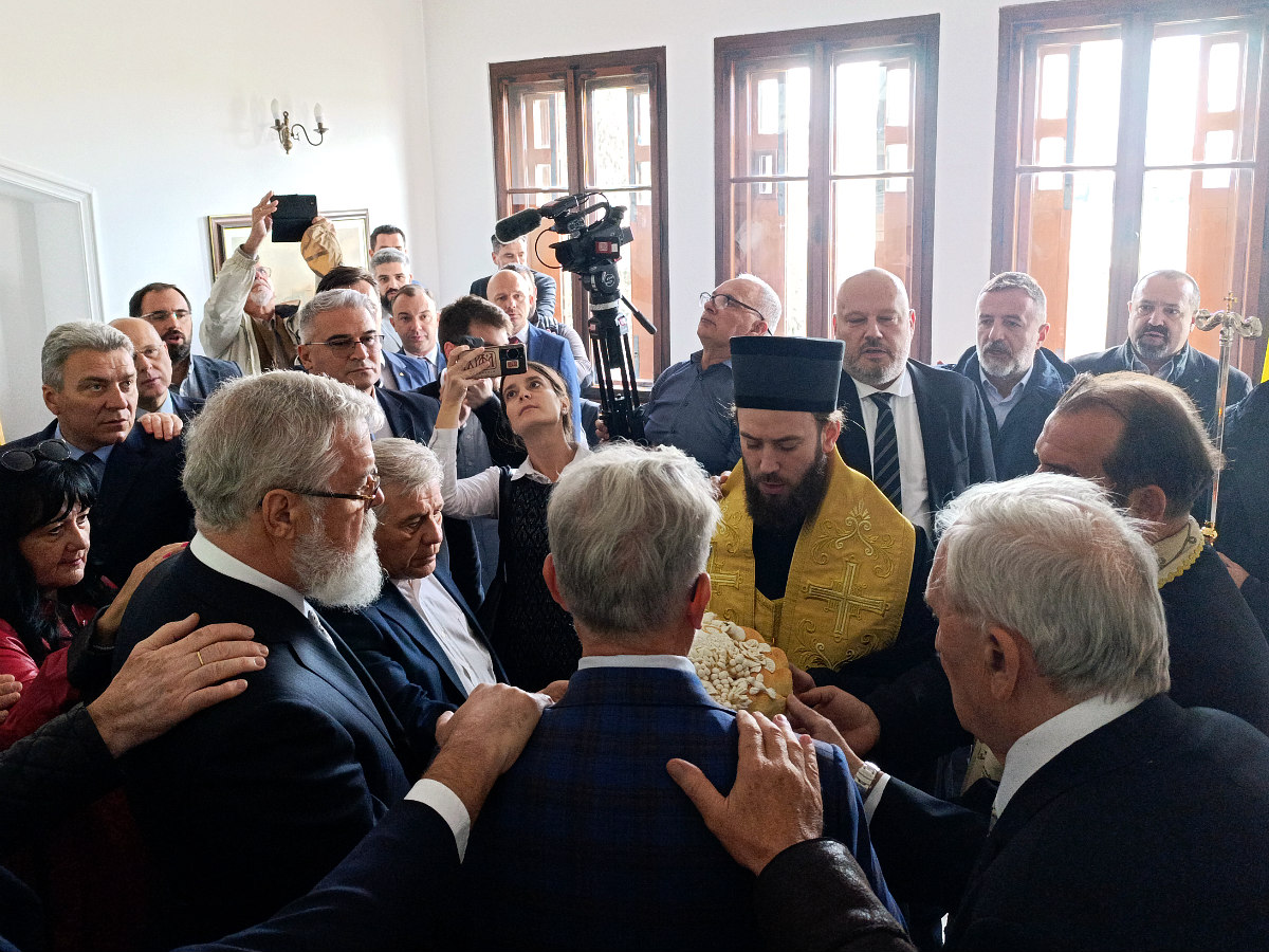 Чином освећења славских дарова началствовао је Његово Преосвештенство Епископ топлички г. Петар, викар Његове Светости Патријарха српског г. Порфирија, уз саслуживање јереја Владимира Марковића, настојатеља храма Светих апостола Петра и Павла у Топчидеру.
