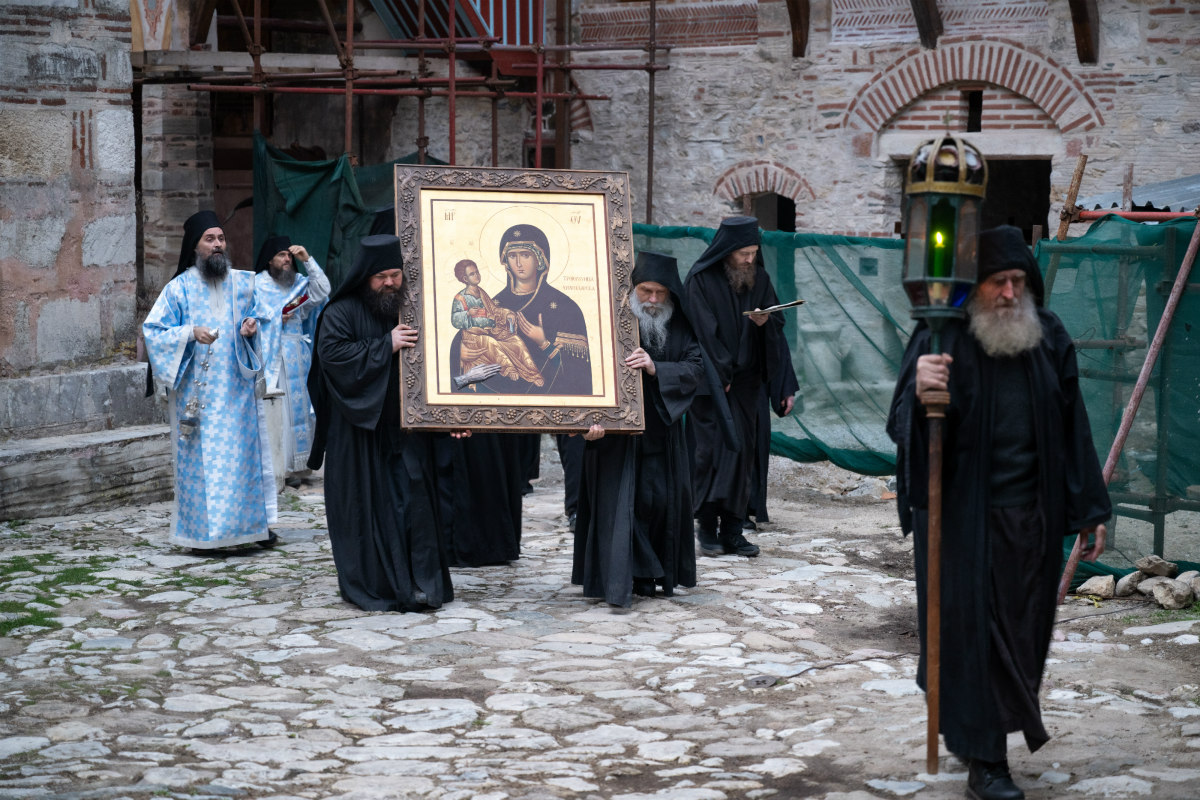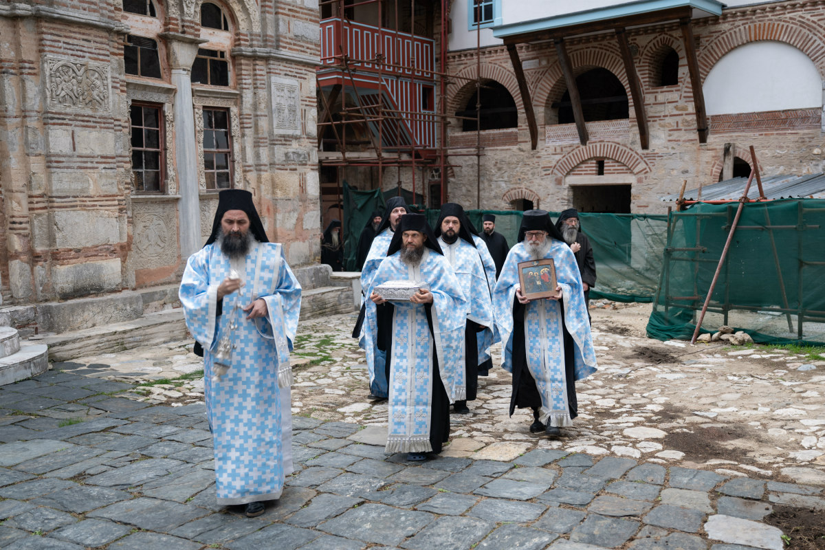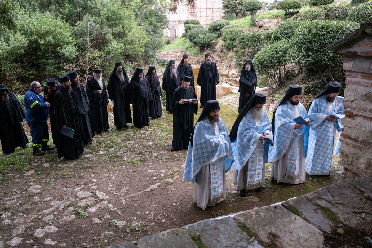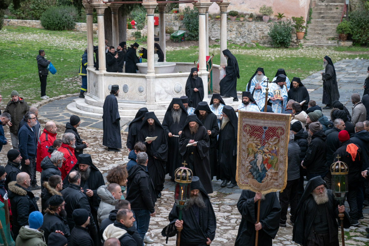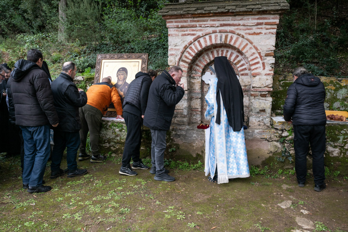 По устаљеној манастирској традицији, на празник Богојављења, након свеноћног празничног бденија и Свете Литургије, уследила је литија са преписом иконе Пресвете Богородице Тројеручице до оближњег потока у близини манастирских зидина, где је извршен чин освећења богојављенске воде.