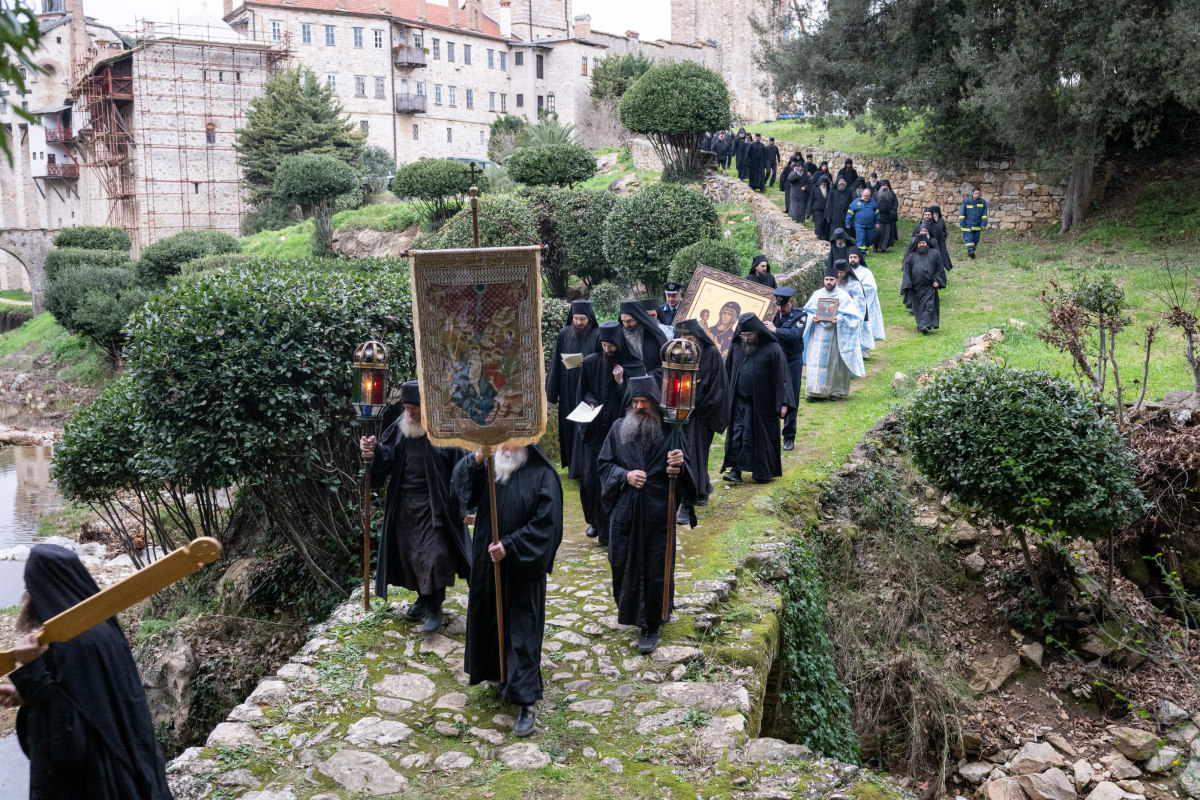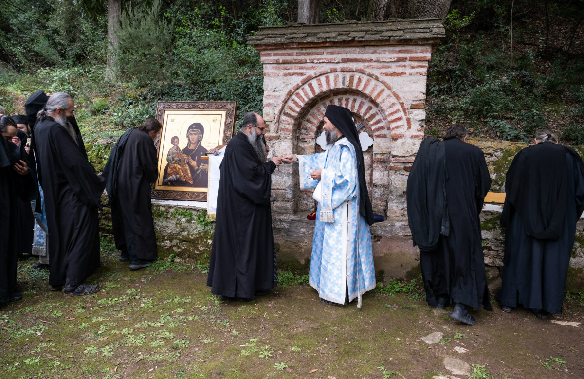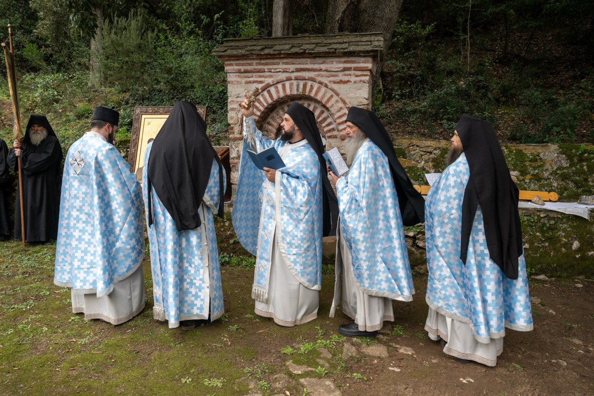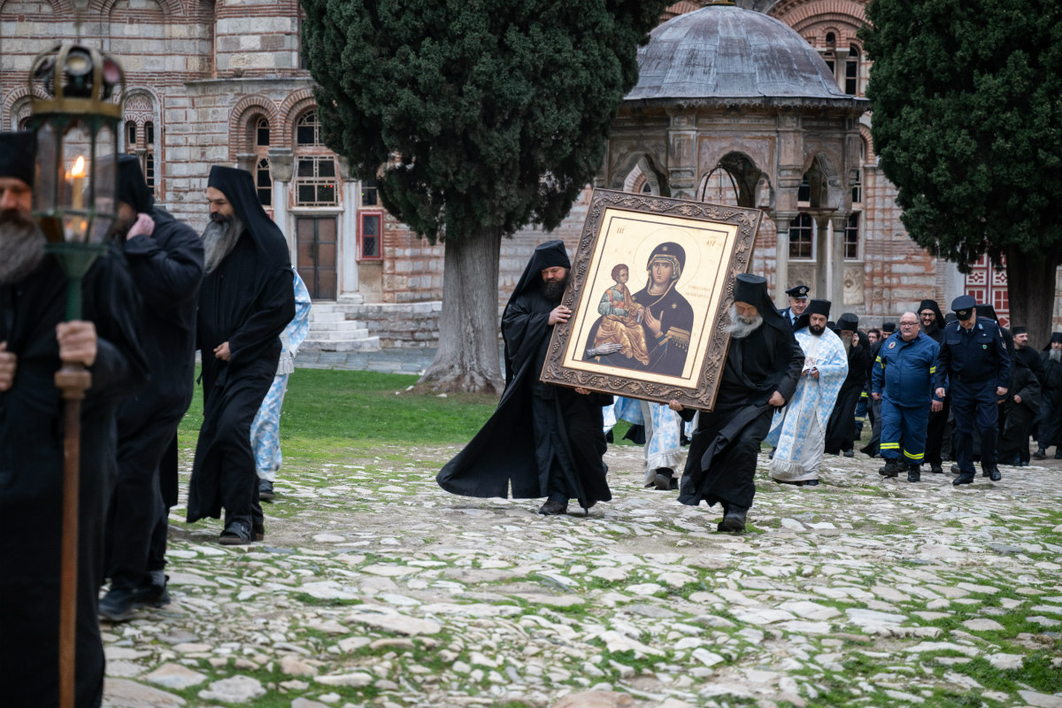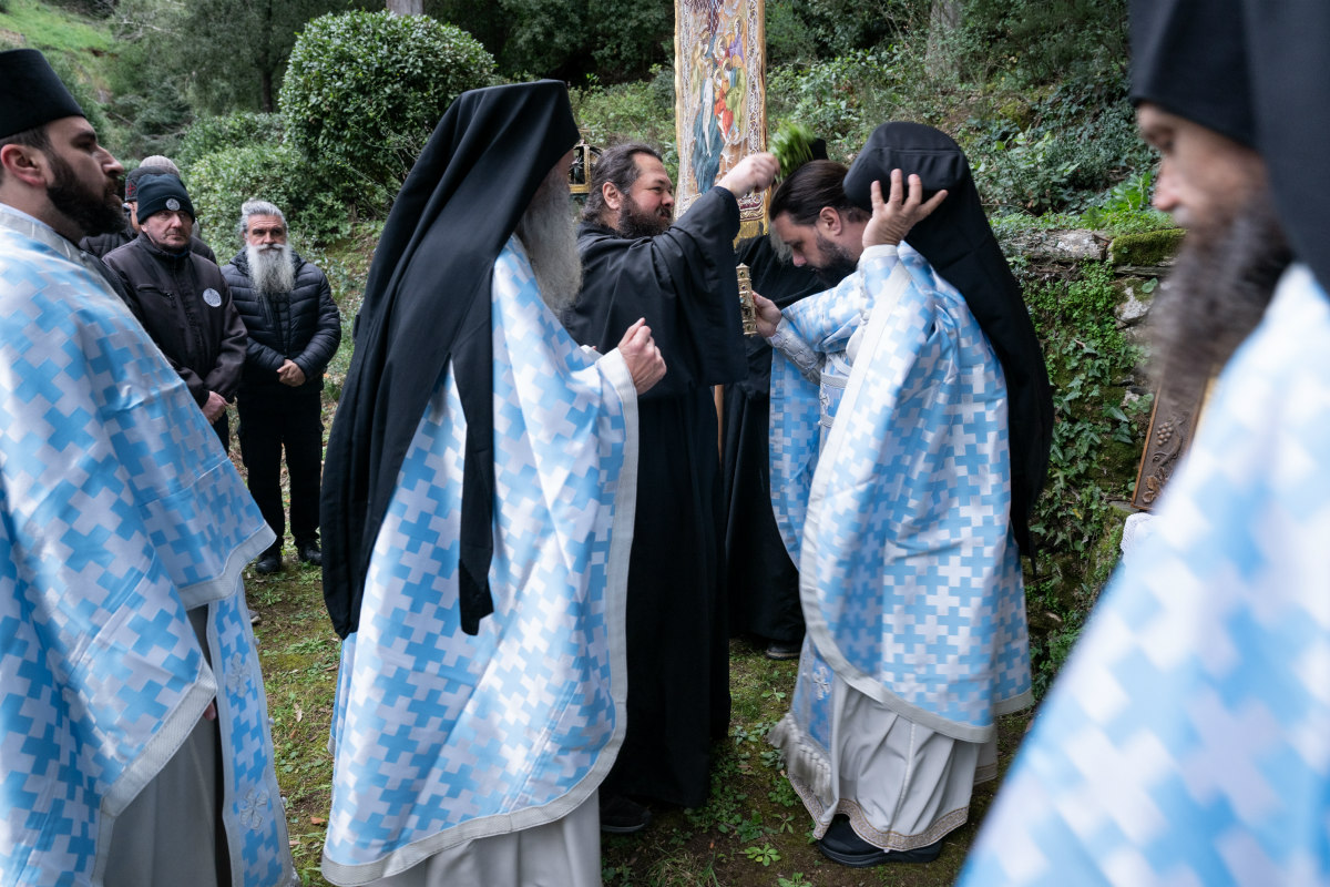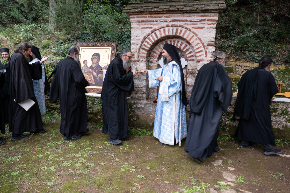 По устаљеној манастирској традицији, на празник Богојављења, након свеноћног празничног бденија и Свете Литургије, уследила је литија са преписом иконе Пресвете Богородице Тројеручице до оближњег потока у близини манастирских зидина, где је извршен чин освећења богојављенске воде.