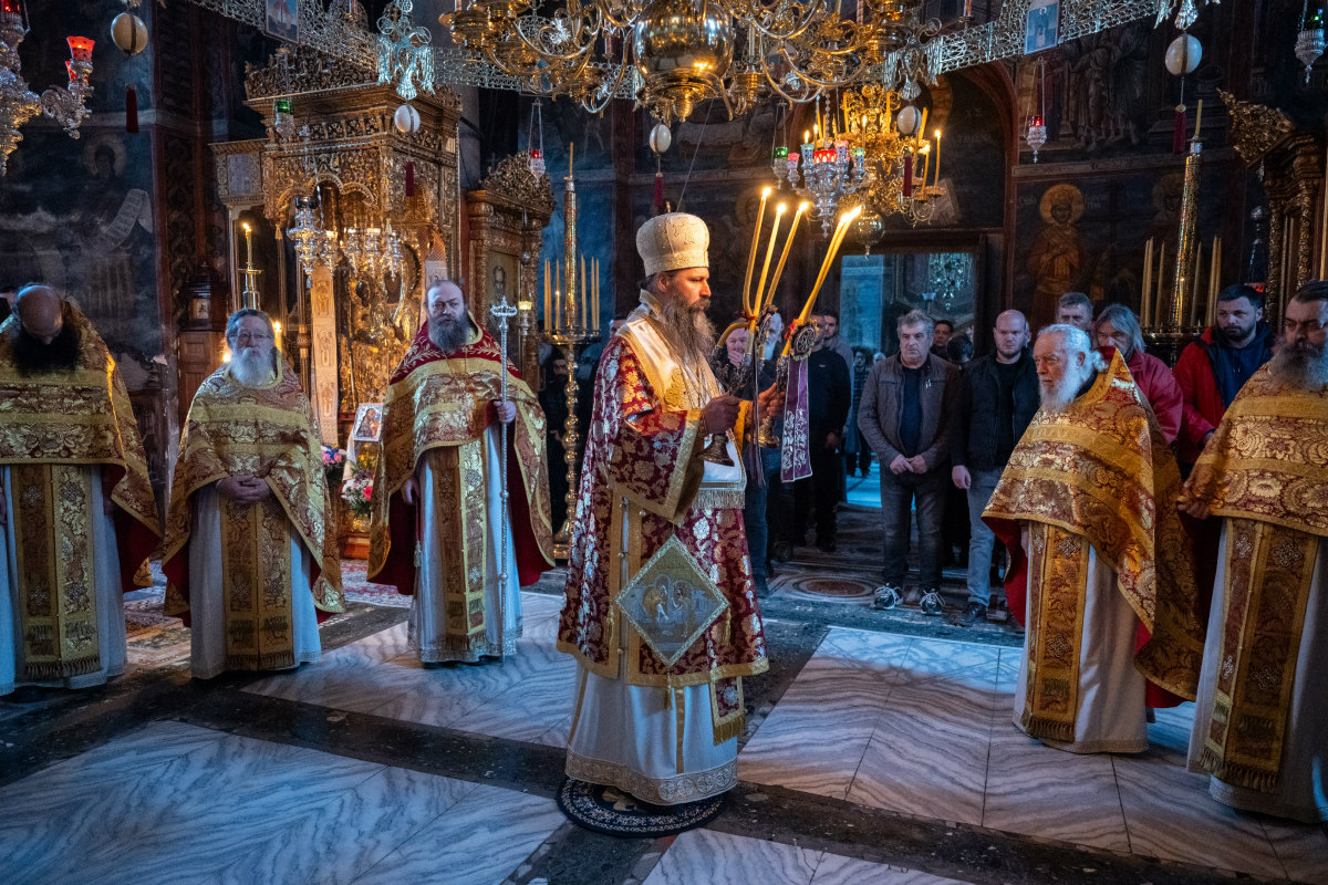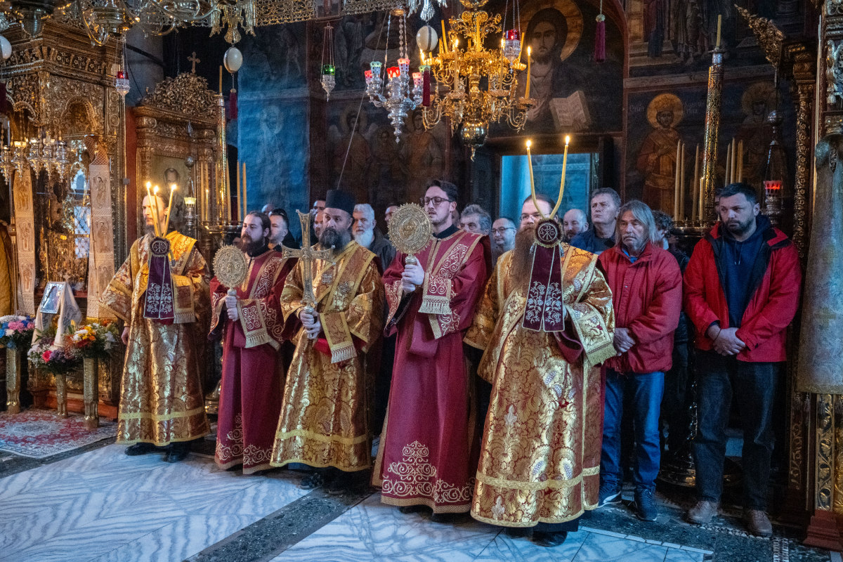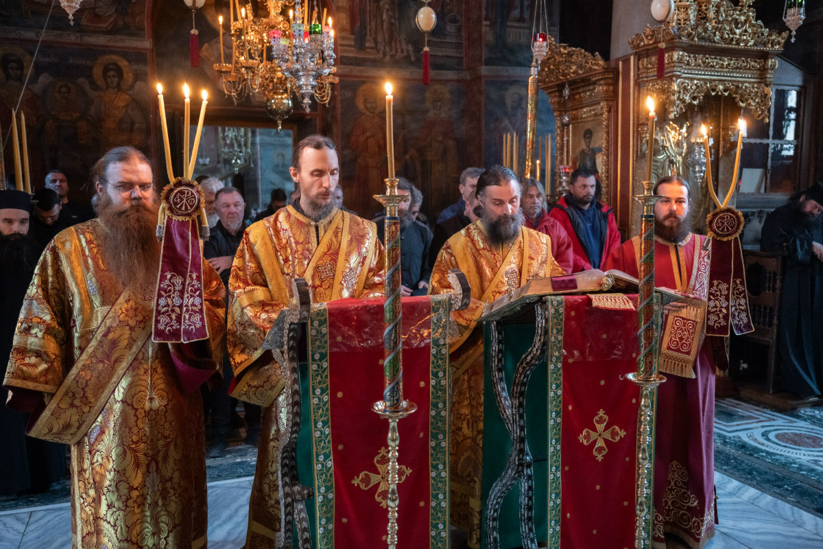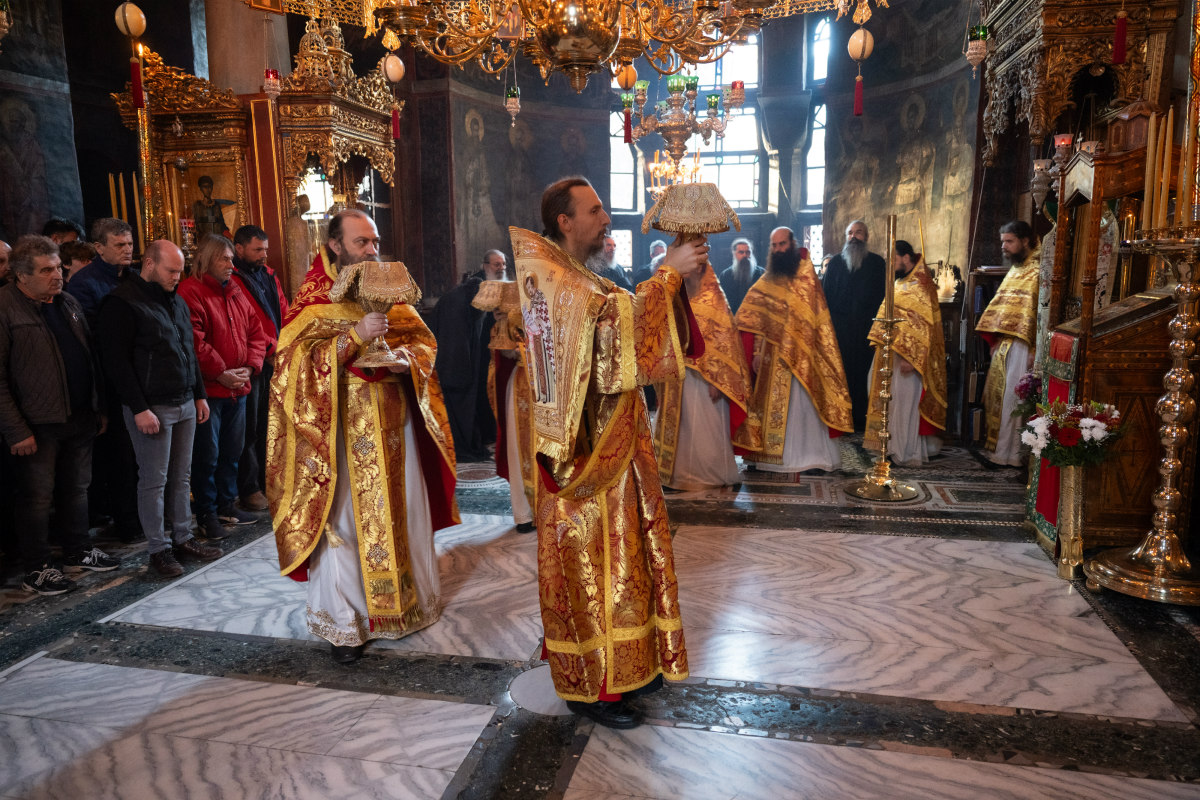 У духу 830. годишњице преноса моштију Преподобног Симеона Мироточивог из Хиландара у Студеницу, празничним бденијем и Светом Архијерејском Литургијом у хиландарском саборном храму је началствовао викарни Епископ Његове Светости Патријарха српског г. Порфирија, Његово Преосвештенство Епископ новобрдски г. Иларион.