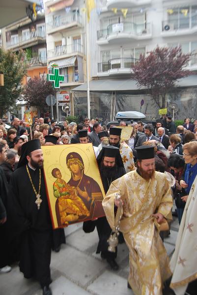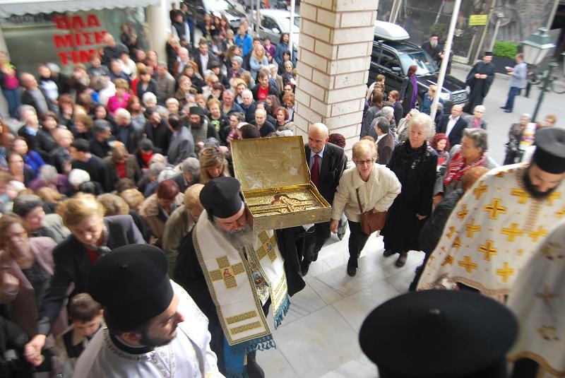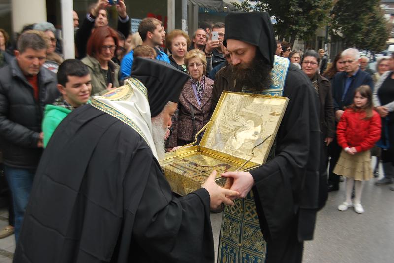 Солун – У петак 19. априла у храму Светог Георгија у Неаполију (северозападни део Солуна) молитвено су дочекани део Часног крста и копија иконе Пресвете Богородице Тројеручице из манастира Хиландара.