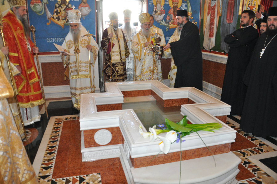 „Та, дакле, крстионица, данас обновљена, је вашом благословеном руком, Ваша Светости, миропомазала и крстила и просвијетлила седамнаест нових хришћана и хришћанки и тиме показала да је Црква Божија мајка која рађа и препорађа двије хиљаде година. И рађаће и препорађаће у сва времена до краја свијета и вијека. Зато је, Ваша Светости, ваш долазак овдје благословен, јер сте ви наследник онога кога је родио Свети Симеон Мироточиви и који је родио Симеона Мироточивог духовно – Светога оца нашега Саве“, закључио је Митрополит Амфилохије.