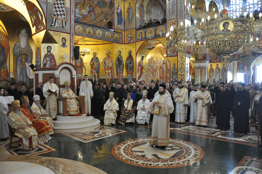 Светом службом началствовао је Његова Светост Патријарх српски Господин Иринеј, уз саслужење Архиепископа цетињског Митрополита црногорско-приморског Господина Амфилохија, Господе Епископа: шумадијског Јована, захумско-херцеговачког Григорија, рашко-призренског Теодосија, будимљанско-никшићког Јоаникија, полошко-кумановског Јоакима, свештенства и свештеномонаштва и уз молитвено учешће многобројног верног народа.