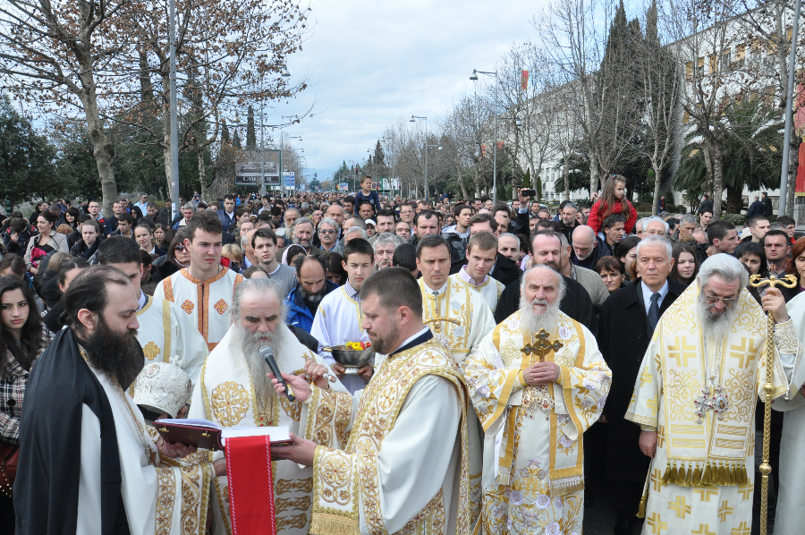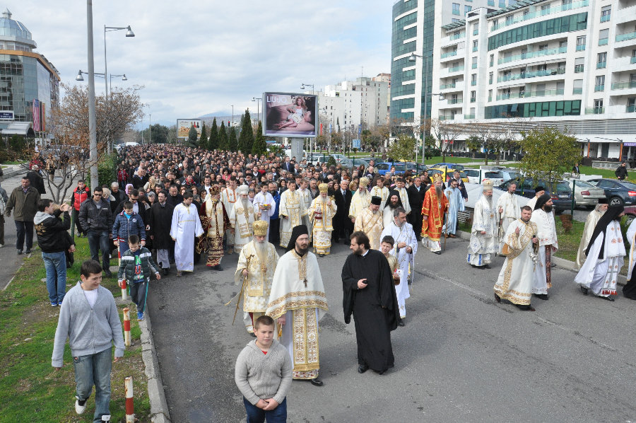 Након Литургије Његова Светост је са Архијерејима предводио Светосимеоновску литију која се подгоричким улицама кретала од Саборног храма до Немањиног града на ушћу Рибнице у Морачу.