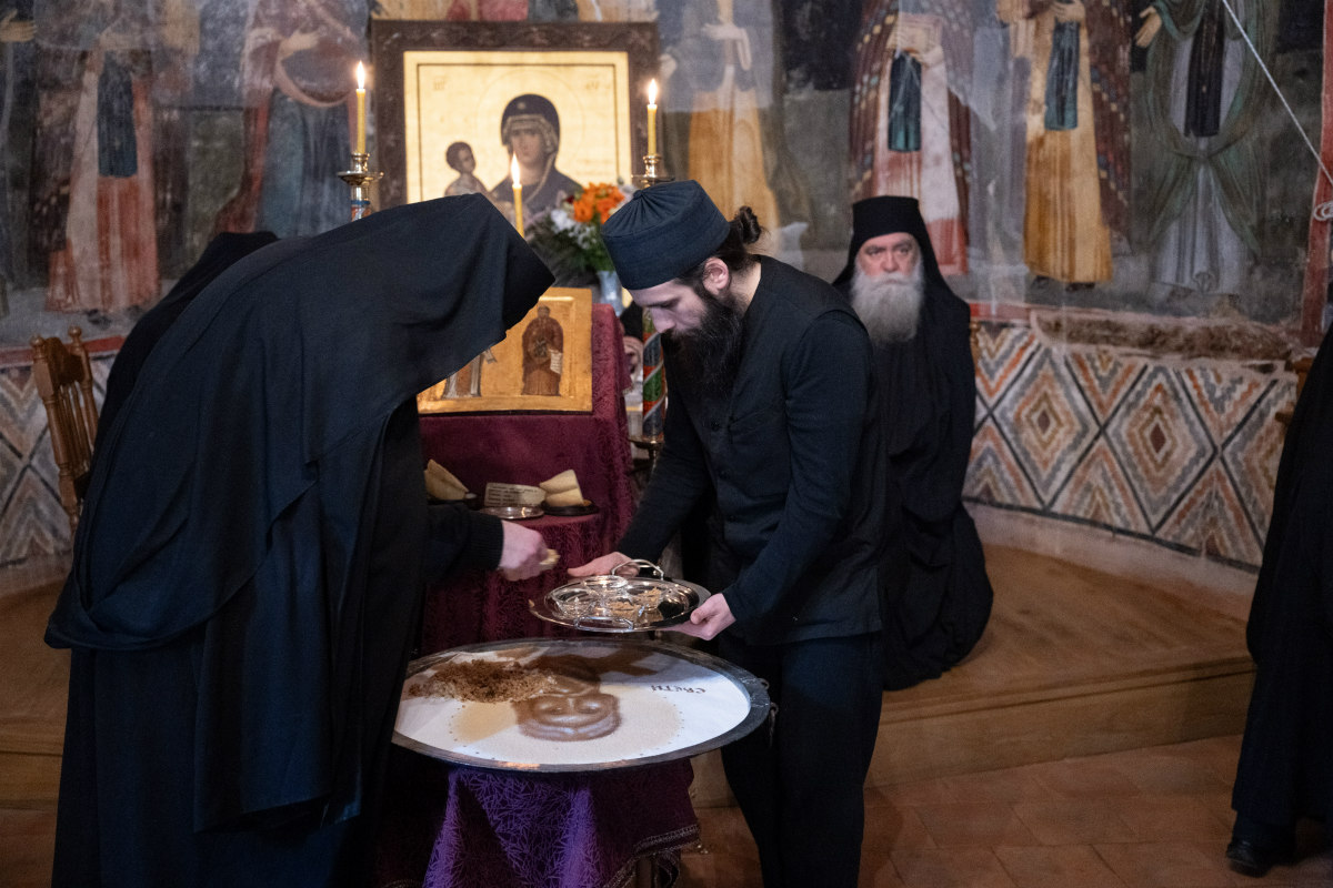 При крају Литургије, освећено је кољиво са ликом Светог Саве, након чега је послужена славска трпеза за све присутне у хиландарској трпезарији.