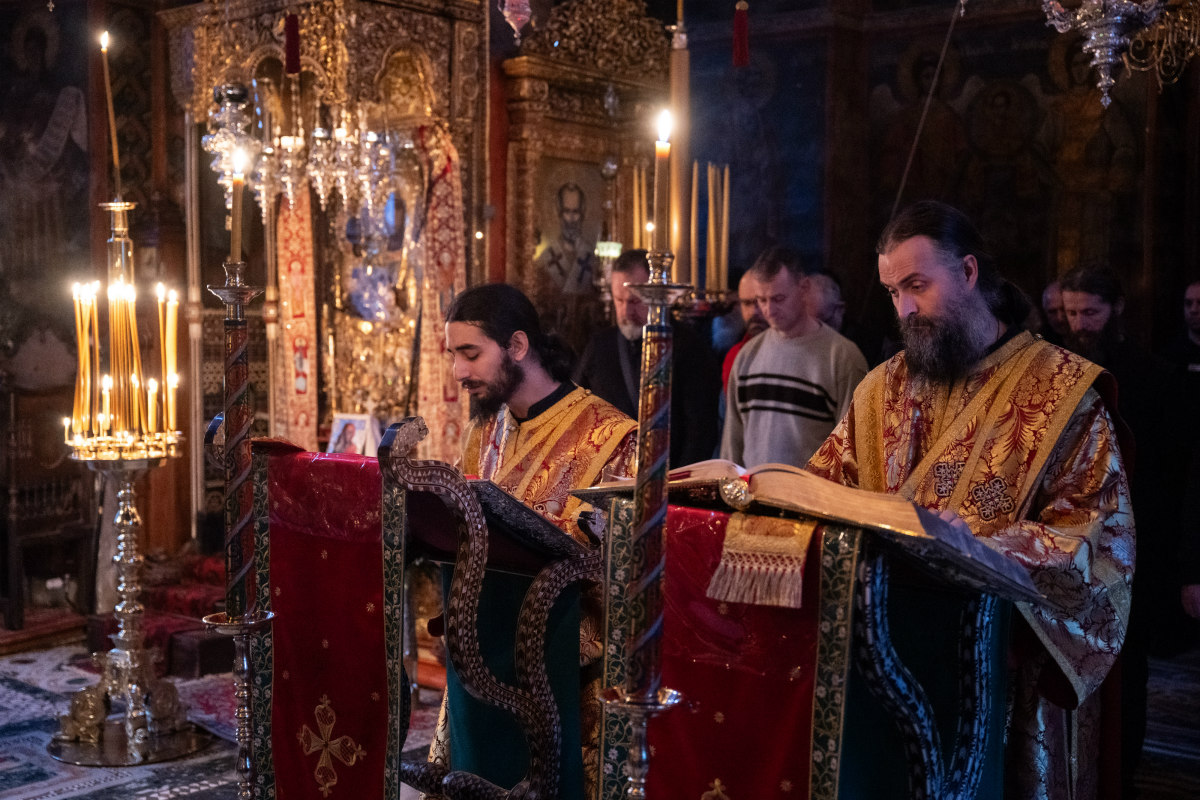 Лепоти богослужења допринели су монаси из манастира Григоријата, који су појали за десном певницом, као и хиландарски монаси и појци хора „Свети Симеон Мироточиви”, који су појали за левом певницом.